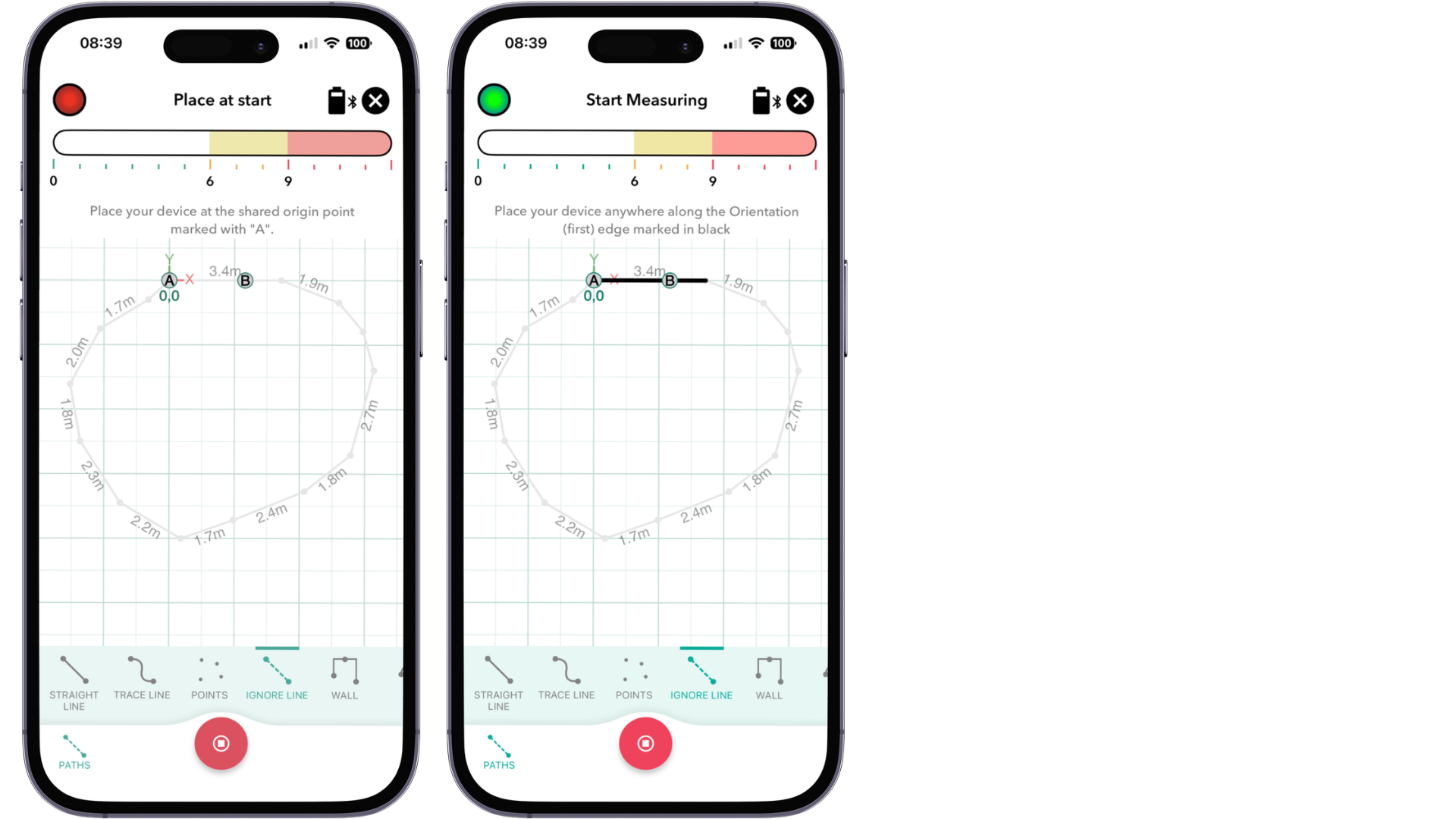 4. Once the A–B reference walk is complete, the app will automatically switch to **Ignore Line**
