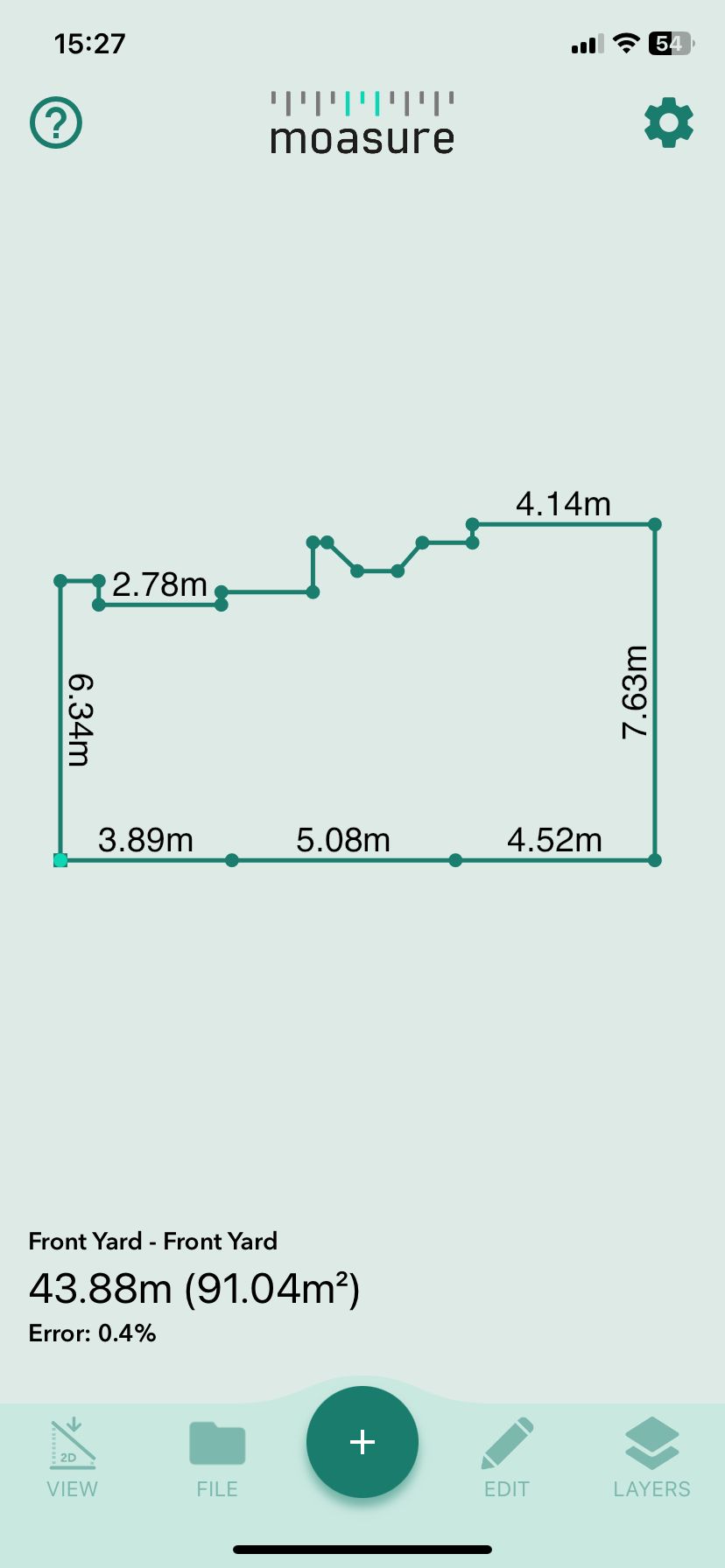 Utilizzeremo il tipo di misurazione [Forma Chiusa](https://docs.moasure.com/it/app-moasure/tipi-di-misurazione#closed-shape) perché inizieremo e finiremo nello stesso punto e perché ci interessa ottenere la metratura del giardino. I metri quadrati sono visibili solo quando si utilizza il tipo di misura [Forma Chiusa](https://docs.moasure.com/it/app-moasure/tipi-di-misurazione#closed-shape). Non ci sono curvature nel contorno del giardino, quindi abbiamo usato la [Linea Retta](https://docs.moasure.com/it/app-moasure/tipi-di-percorsi#linea-retta) per ogni [Percorso](https://docs.moasure.com/it/app-moasure/tipi-di-percorsi).