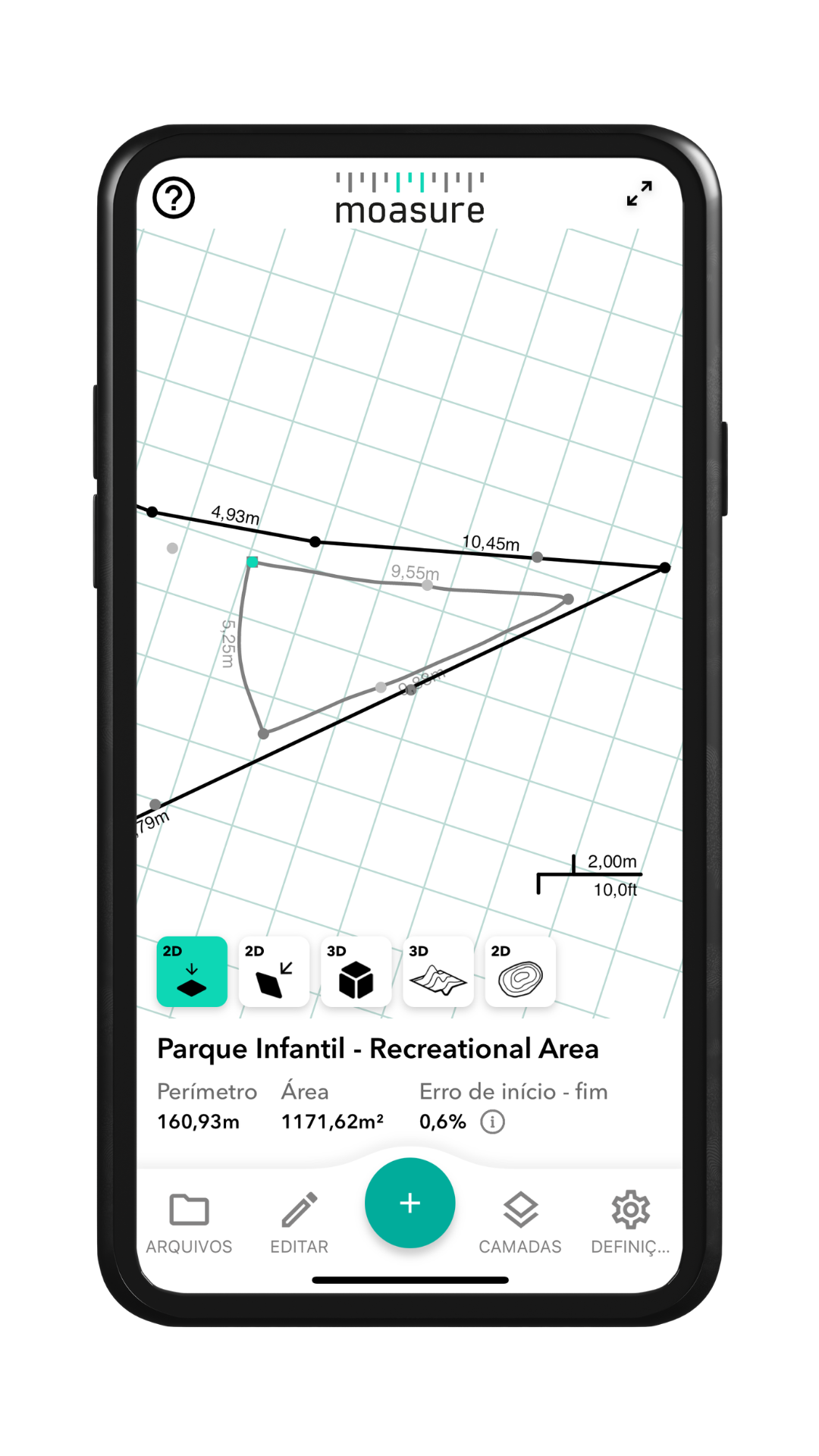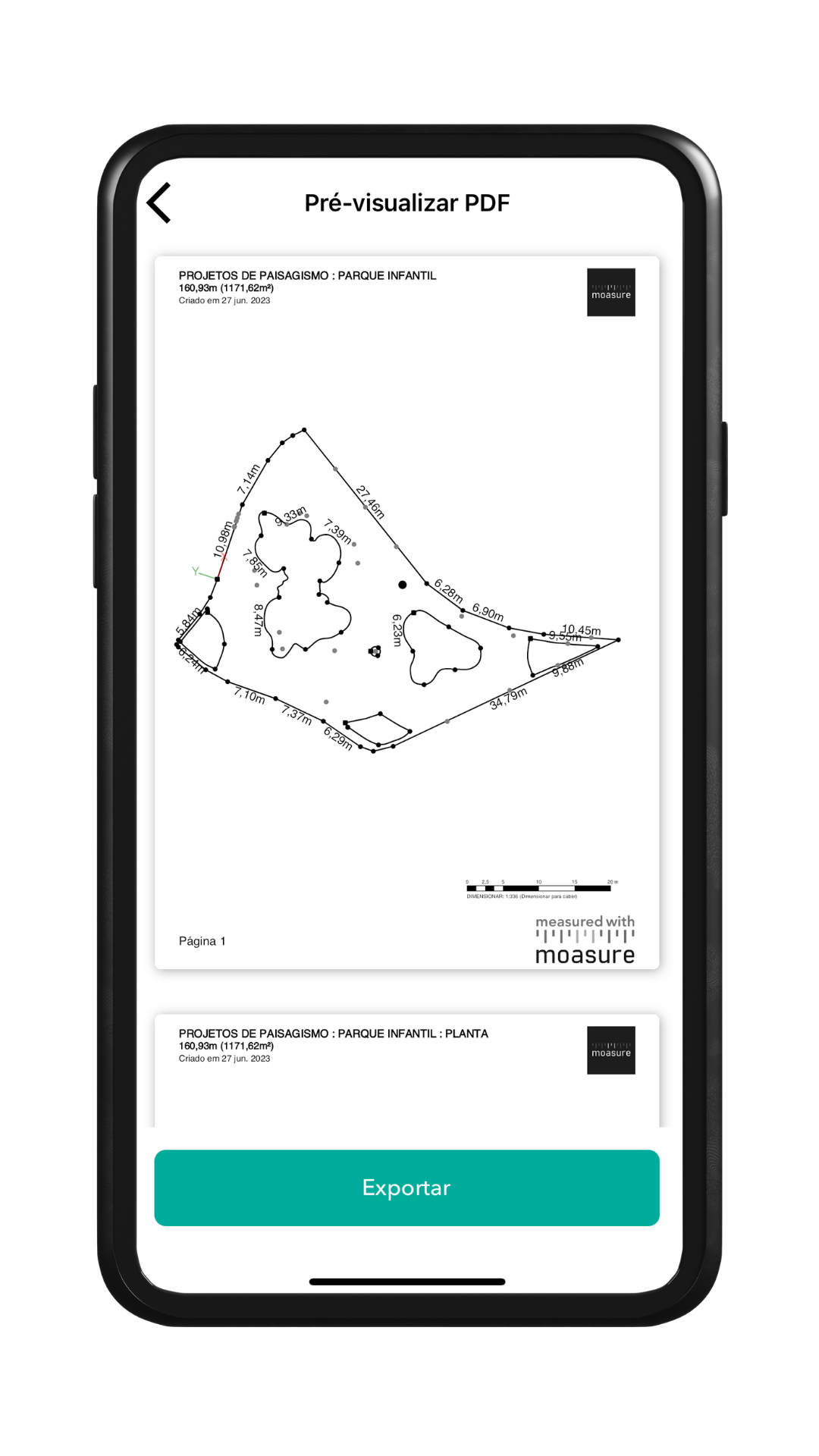 A partir da versão **3.0** da aplicação, as medições de **Ponto a Ponto** podem ser exportadas para **PDF com escala**, garantindo uma representação precisa para utilização em apresentações, relatórios ou processamento posterior.