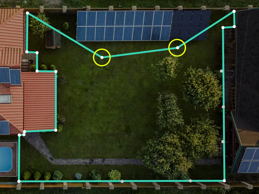 In the following example, the back yard has large solar panels situated along the perimeter, preventing us from taking a measurement along the very edge of the lawn.