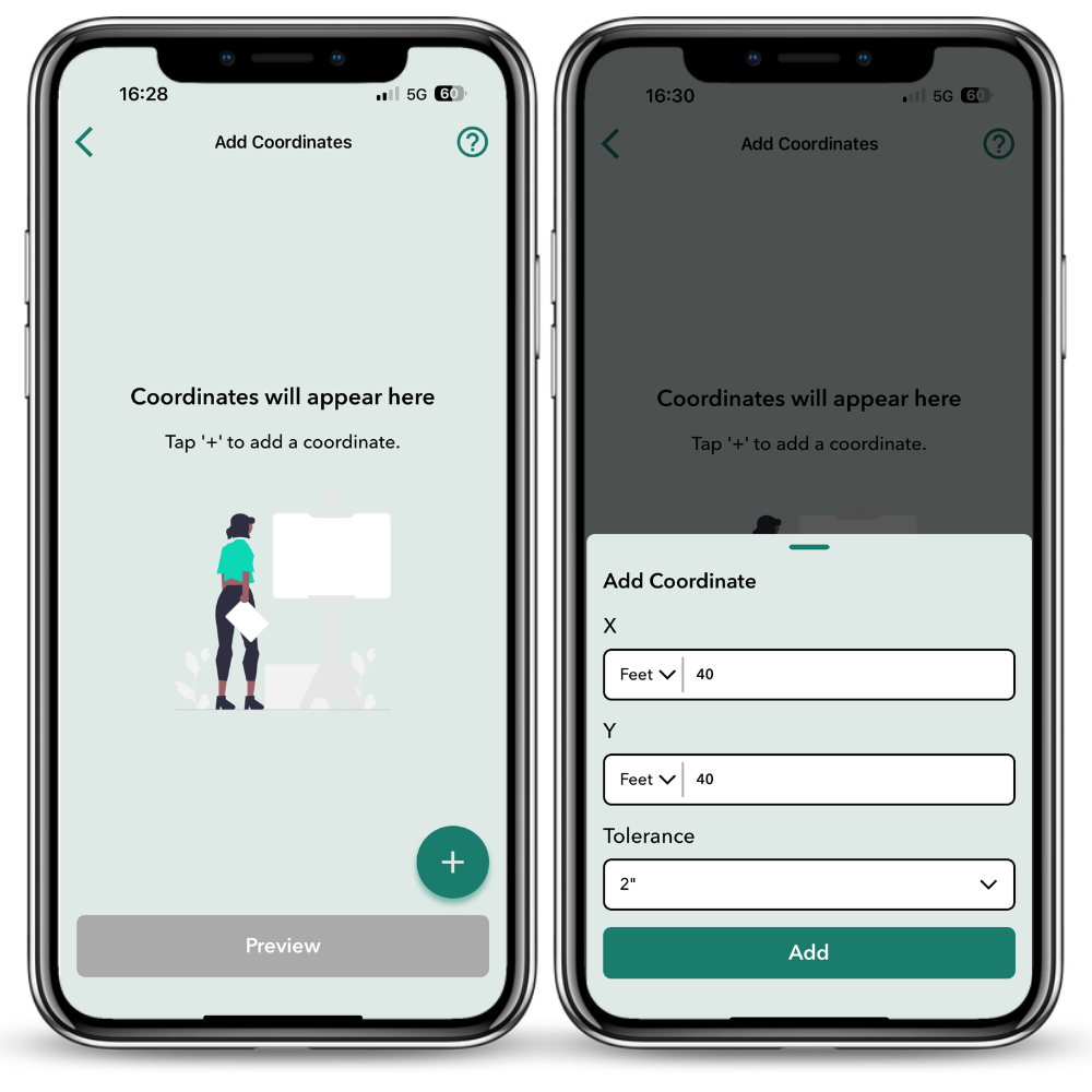 Appen kommer att uppmana dig att mäta in referenskanten innan den guidar dig till de inmatade koordinaterna.