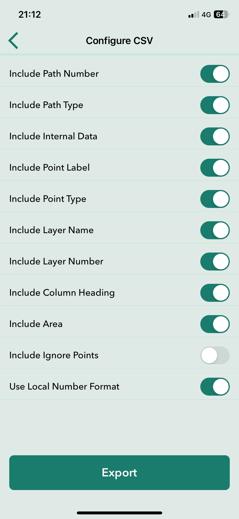 Include Ignored Points. Adds Ignored points to the CSV.