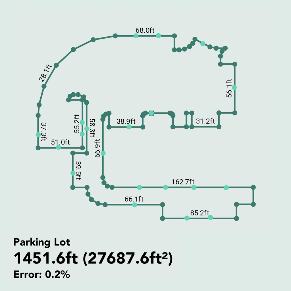 Denna metod är särskilt värdefull för uppgifter som att mäta gräsmattor, gårdar, trappor, uppfarter och pooler, eftersom den effektivt beräknar kvadratmeter eller kvadratfot.