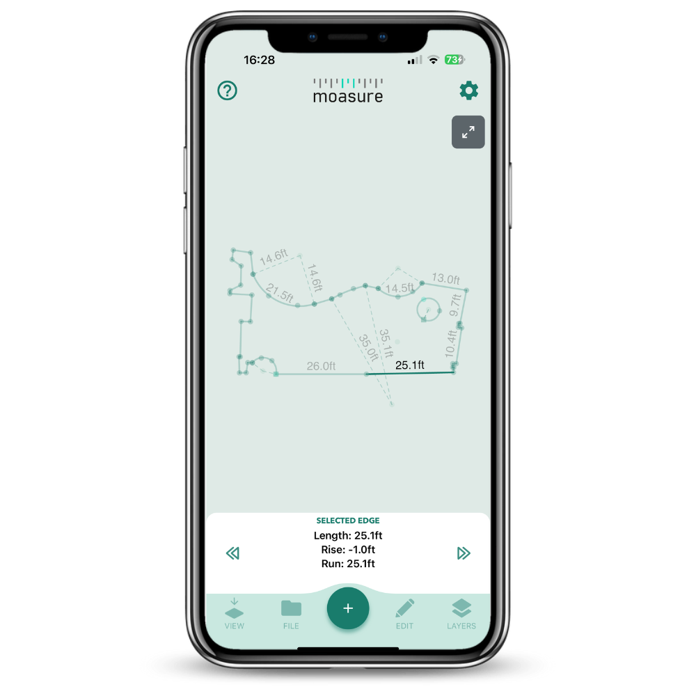 Tryck på en vald kant för att inspektera eller visa längd, höjdskillnad och horisontellt avstånd.
